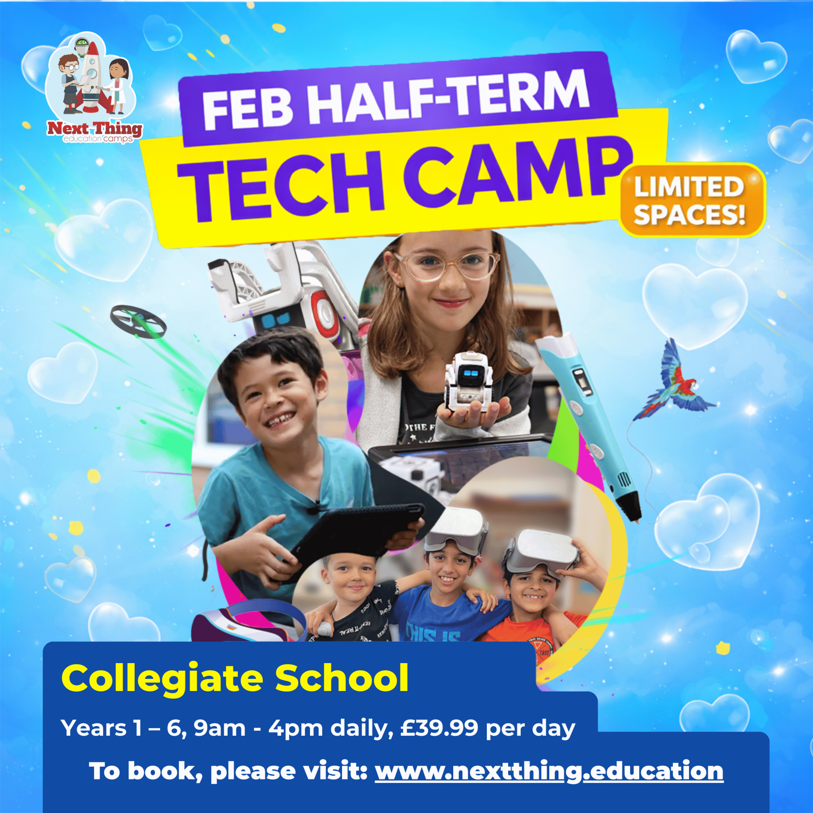 We’re excited to be hosting a Technology & STEM Camp this February half-term for children aged 5–11 at our school, delivered by Next Thing Education.